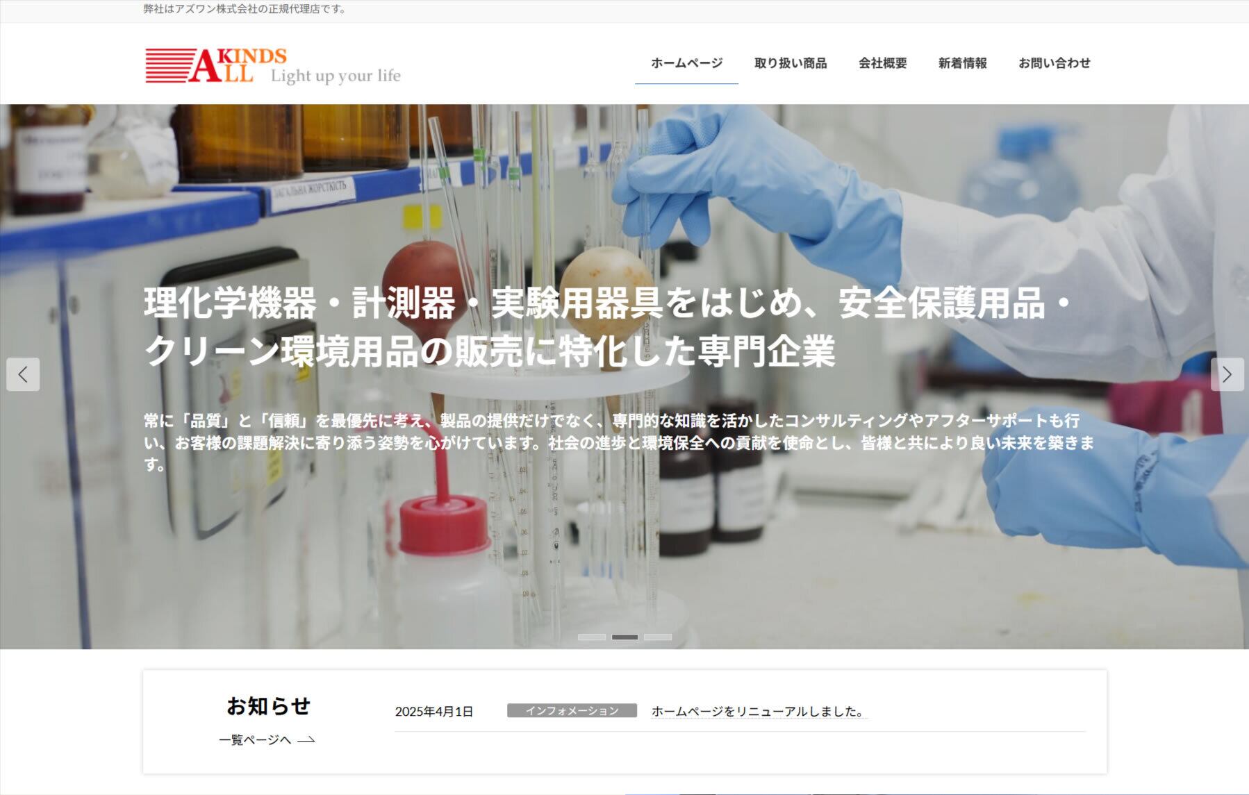 理化学機器・計測器・実験用器具や安全保護用品・クリーン環境用品の販売